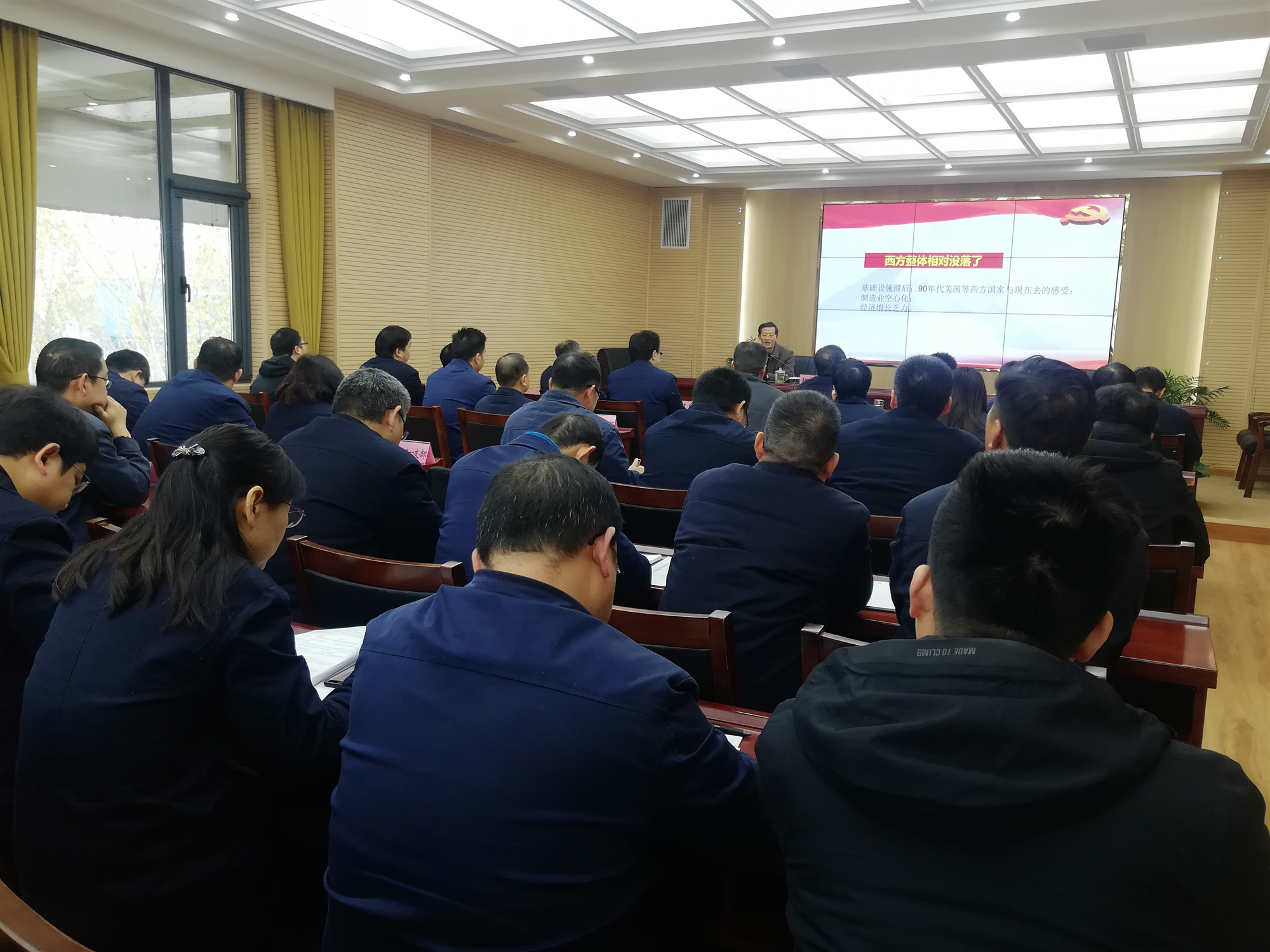 為認真學(xué)習(xí)貫徹黨的十九屆五中全會精神,切實增強同力水泥豫西運營區(qū)全體員工的思想自覺、政治自覺和行動自覺,把十九屆五中全會的各項決策部署和工作要求落到實處,12月3日,黃河同力、騰躍同力舉辦黨委理論學(xué)習(xí)中心組(擴大)集體學(xué)習(xí)報告會,邀請洛陽市委十八大、十九大精神宣講團成員、市委黨校黨史黨建教研部副教授趙家國作題為“歷史交匯點上的宏偉藍圖——黨的十九屆五中全會精神解讀”主題報告。黃河同力、騰躍同力黨委班子成員、各支部書記、中層干部和各支部支委代表40余人等聽取了報告。
